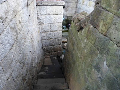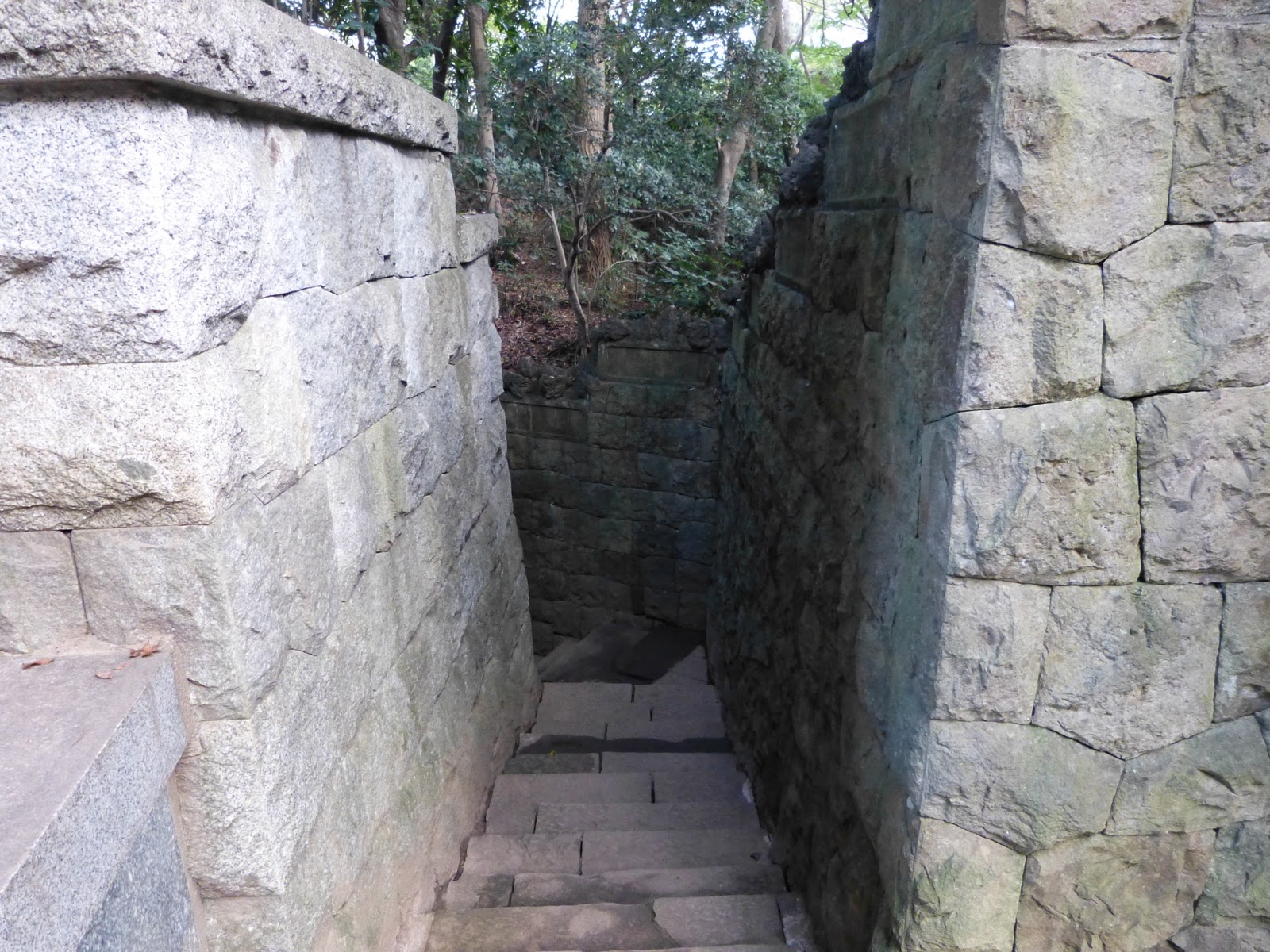 薄暗い石の階段を降りていきます。